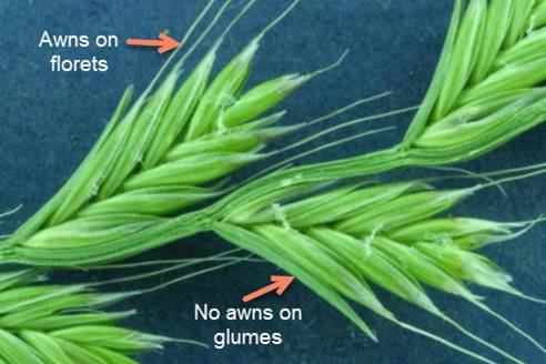 exception to the “has awns” rule, Italian Ryegrass sometimes shows no awns on